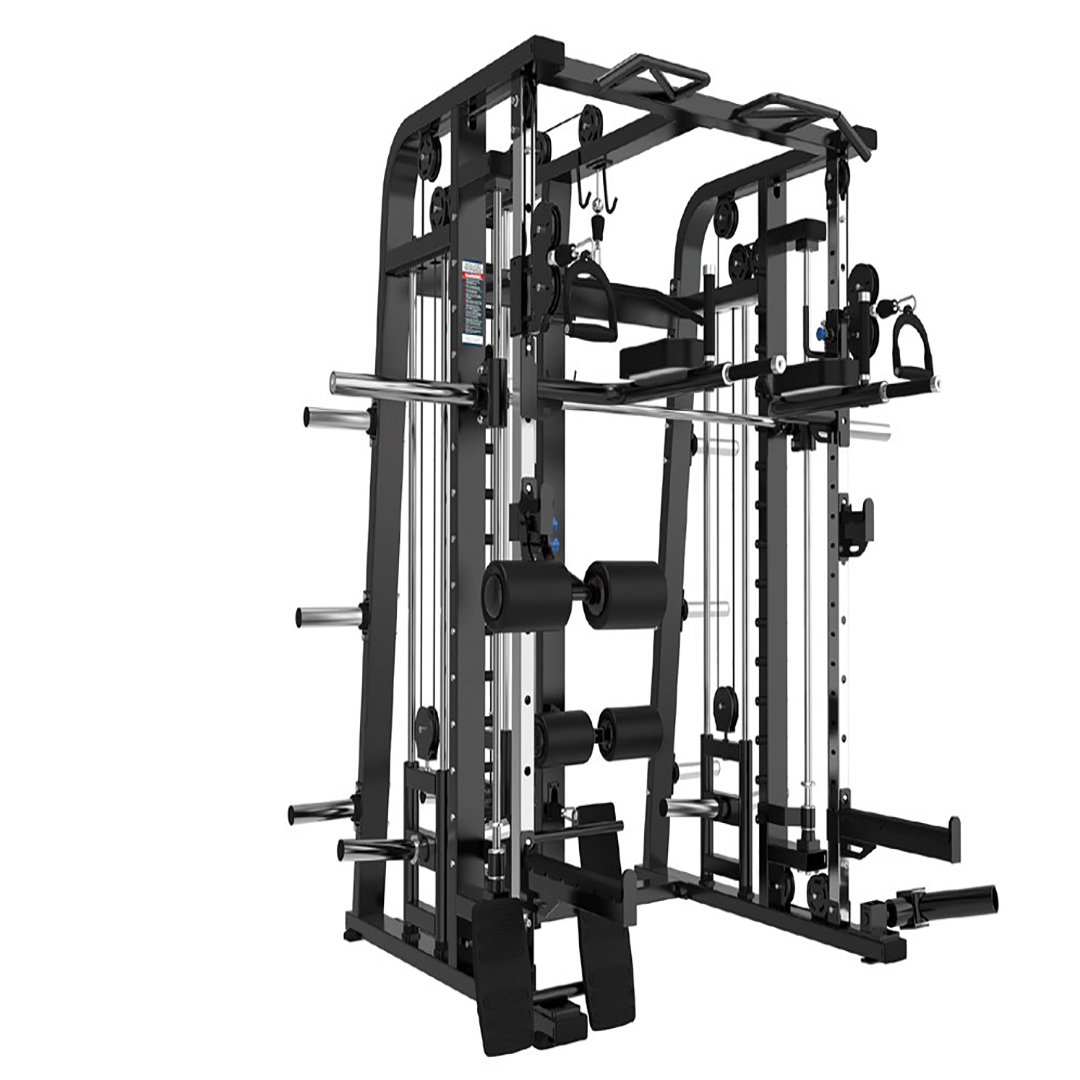 The DZ 93 Smith Machine is a versatile and robust piece of equipment designed for strength training enthusiasts. Featuring a smooth, guided barbell system, it ensures safety and stability during workouts, allowing users to perform a variety of exercises with confidence. The machine is constructed with high-quality materials, providing durability and longevity, while its compact design makes it suitable for both home gyms and commercial fitness centers. With adjustable safety stops and a range of weight options, the DZ 93 Smith Machine caters to all fitness levels, making it an essential addition to any workout regimen.