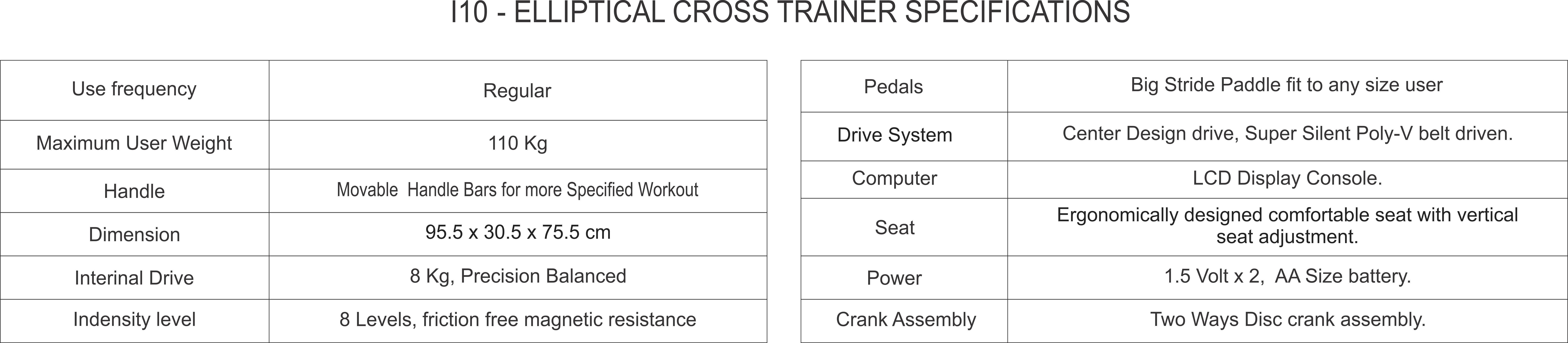 The elliptical machine offers a low-impact cardiovascular workout, designed to engage both the upper and lower body while minimizing stress on the joints. Its adjustable resistance levels cater to users of all fitness levels, promoting endurance and strength training. The sleek design features an easy-to-read display that tracks time, distance, calories burned, and heart rate, ensuring an efficient exercise experience. Ideal for home gyms, this versatile equipment enhances overall fitness and supports weight management goals.